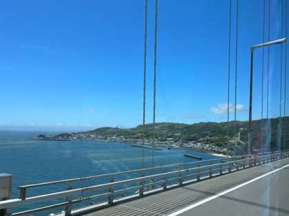 明石海峡大橋を越えて,淡路島に到着しました。きれいな海が見えて、みんな大喜びでした。絶景です!