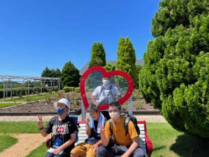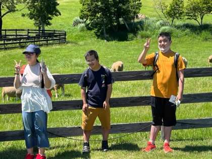 イングランドの丘を散策しています。羊さんたちと一緒に記念撮影。おや,ハートのマークの中には…。