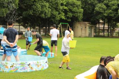 友達と水をかけあったり,小さいプールに浸かったりして楽しみました。