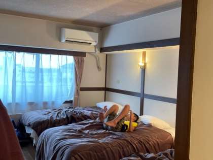 お部屋に入って,休憩です