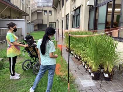 全校集会後は,各学年・クラスで学習を行いました。友達と水遊びをしてはしゃいだり,オンラインで教室を繋いで学年集会を行い,それぞれの夏の思い出を聞いたりしました。また,夏休み前から育てていた農作物の見て,「すごい!大きい!」と作物の成長に驚いていました。