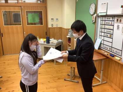 本日終業式が行われました。西総合支援学校中学部に入学して初めての通知表も受け取ることができました。ご家庭でもお子様と一緒に見てあげてください。