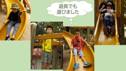 初めての校外学習で京都府立植物園に行きました。到着後はバラ園を散策しました。その後、未来くん広場ですべり台を滑ったり、つり橋を渡ったり、思う存分身体を動かしました。たくさん遊んで汗をかいた後は待ちに待ったお弁当です。「いただきます!」と元気に挨拶をして、大好物がたくさん入ったお弁当を美味しくいただきました。