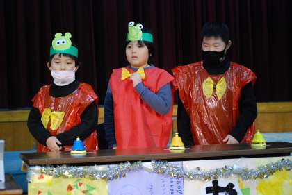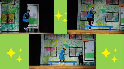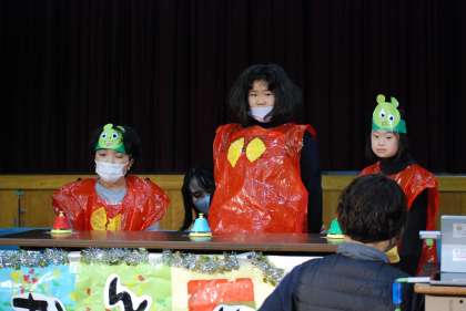 各階で繰り広げられる縄跳びや平均台,インラインスケート,また,ハンドベル演奏会やクイズ大会の様子が披露され,最後には最上階でダンスパーティーして大盛り上がりでした。