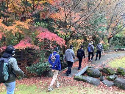紅葉が綺麗な中,景色を見ながら歩く姿も見られました。