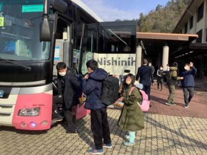 たくさんの後輩たちに見送られ,笑顔いっぱいで出発しました。