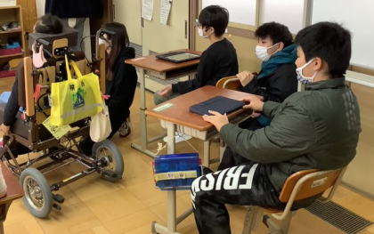 中学部の総合的な学習の時間「ICT」ユニットでは、先月、小学部6年生の児童が体験学習として一緒に活動しました!