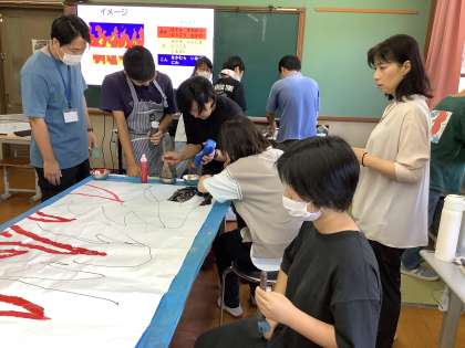 今日と明日、中学部・高等部の生徒会の子どもたちがリーダーズミーティングを行っています。本日は子どもたちが生徒会目標の入った横断幕を作成しています。完成したものは夏休み明けに玄関に貼り出す予定です。