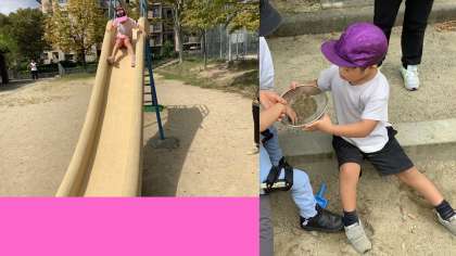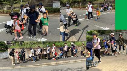 事前に決められたルールを守って歩くことができました。公園では、安全にブランコやすべり台、砂場で遊びました。