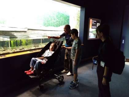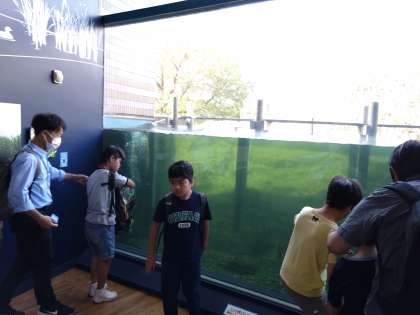 みんな水槽の魚たちに見入っています。