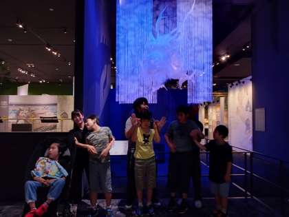 昼食も終わり琵琶湖博物館内でそれぞれの興味に合わせて後半の見学をしています。