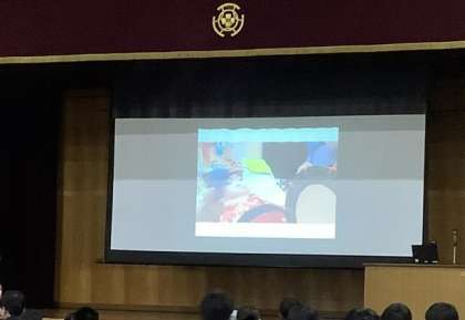 後期始業式を、体育館とオンラインで行いました。校長先生からは後期に行われる行事のスライドと共に、学校祭文化の部では「全員が一つのことを全力でやりましょう!!」、後期も「一日一日を大切に過ごしましょう」とお話がありました。また、訪問の生徒の学習の様子の画像、「訪問バンド」の演奏の映像もみんなで鑑賞しました。