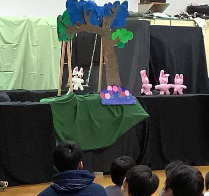本日、小学部は地域でご活躍されている「ひなたぼっこの会」の皆様にお越しいただきました。人形劇や歌などが披露され、子どもたちは、興味津々!身を乗り出して見たり、手拍子をしたりする姿も見られました。「ひなたぼっこの会」の皆様、楽しい時間をありがとうございました。
