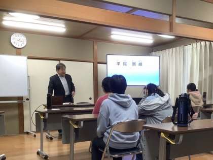 最後は完成した作品の紹介や授業の感想などを発表した後に、それぞれの作品に対して平尾先生からご講評をいただきました。それぞれの良さや工夫したところを平尾先生は優しく生徒たちに伝えてくださっていました。中には「こんな活け方ははじめて見たので、今度の作品作りで取り入れてみようかな。」と褒めていただいた作品もありました。