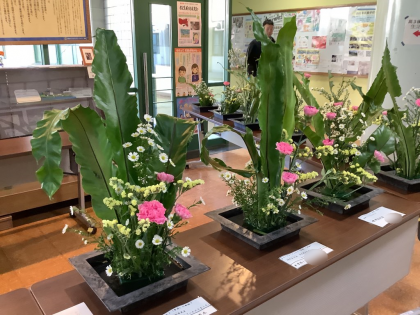 本日は授業参観日でした。多くの参観者に緊張したり、張り切ったり、さまざまな子どもの姿をご覧いただけた思います。子どもたちは4月に入学、進級して以来、本当にたくましく成長しました。受付に飾られた生け花は中学部生徒が「ようこそアーティスト(華道)」の取組で活けたものです。玄関を華やかに彩ってくれていました。来校いただいた保護者の皆様、ありがとうございました。