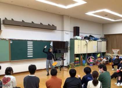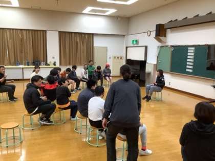 中学部の総合的な学習の時間【エクササイズグループ】では文化庁・京都新聞主催の令和5年度「CONNECT⇌_」の取組で「ダンス」に挑戦しました。講師には、なにわのコリオグラファー「しげやん」こと北村成美先生に来ていただきました。しげやんは子どもたちの何気ない動きをつなげて全員で共有できる動きにし、ダンスに変化させていきました。「アッ!!」「チャンス」「タッチ」といった3つの動きは子どもたちもとても楽しそうに模倣している様子が印象的でした。最初は戸惑っていた子たちも徐々に打ち解けていき、会場は熱気に満ちていました!!全体でのダンスが終わると、一人ひとりとお別れのダンス。素敵な笑顔があふれていました。最後はお礼を伝えて楽しい活動は終了しました。