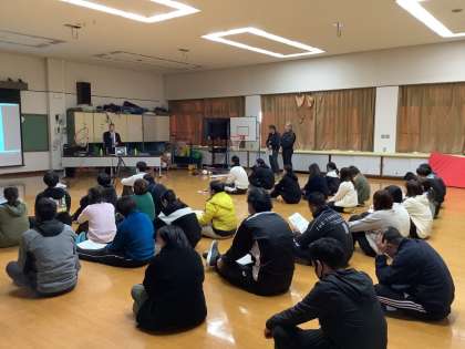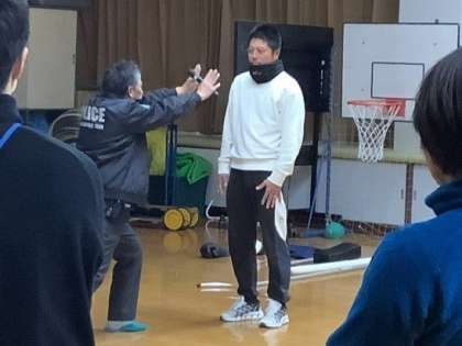 本日は西京警察署生活安全課の方々にお越しいただき、教職員の防犯研修と訓練を行いました。不審者対応の方法や注意点などを講義いただいた後、さすまたの使い方など実際の場面での道具の使い方や心構えを学びました。子どもたちを守るためには複数での対応、役割分担、身近なものでの防衛など、日ごろから今日のような場面を想定し、訓練を重ねることが大切だと教えていただきました。来週の月曜日には全校で不審者対応の避難訓練を行います。