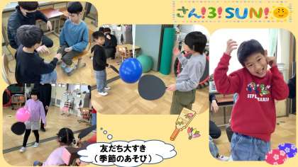 冬休みが終わり、元気いっぱい子どもたちの姿が教室に戻ってきました。「友だち大すき」では、季節のあそびをしました。友だちと一緒に活動し、楽しそうでした。造形活動では、待ち遠しい「春の様子」を描きました。寒さに負けず、元気いっぱい体を動かしました。