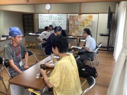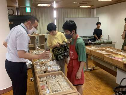 今年度第1回目となる学校運営協議会をおこないました。今年度は高等部の生徒たちが委員のみなさまに飲み物のおもてなしをおこない、その後各机ごとに学校のことや将来のことなど自由に会話をする時間を設定しました。また中学部の生徒たちがワークスタディで作った製品の販売もおこないました。