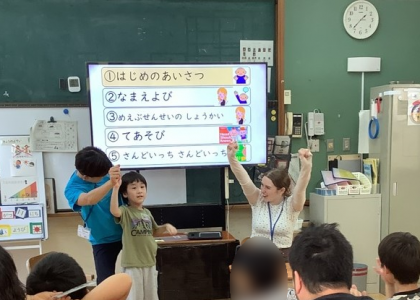 昨日はALTのデイリー・メーブ先生がはじめて来校されました。今回は小学部の子どもたちがメーブ先生と英語学習をしました。みんないきいきと楽しそうに英語に親しんでいました。昼休みに校内を歩いている先生の姿を見かけて、話しかける子どももいました。メーブ先生、これからもよろしくお願いします。