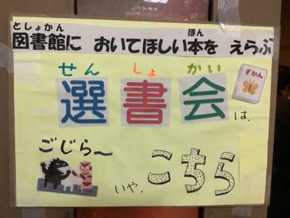 今日から2日間生活学習室で選書会をしています。たくさん並んだ本の中から子どもたちは自分が気に入った本を選び投票をしていました。子どもたちが選んだ本をたくさん図書館で購入する予定です。