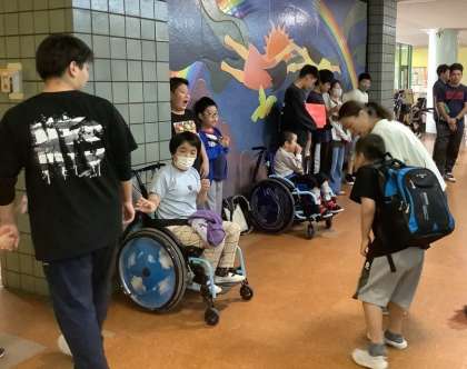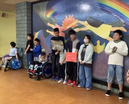 生徒会、児童会の子どもたちが「朝のあいさつ運動」をしています。笑顔と元気なあいさつに迎えられて、登校した子こどもたちも立ち止まり、笑顔で応えています。
