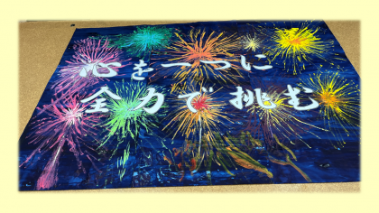 本日は「フェスティバル」2日目のリハーサルを行いました。本番さながらのリハーサルで、子どもたちの生き生きとした表情を見ることができました。生徒会、児童会の子どもたちが作っていたフェスティバルの横断幕も完成しています。テーマの「心を一つに 全力で 挑む」を全校で目指したいです。気温も下がり、秋も深まってきました。体調に気をつけて、来週の本番を迎えたいです。