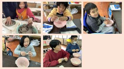 写真はワーク体験の様子です。「紙工」「木工」「陶工」「農園芸」「布加工」の中から2種類体験しました。真剣な表情でワーク学習に取り組む姿が印象的な活動になりました。