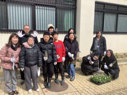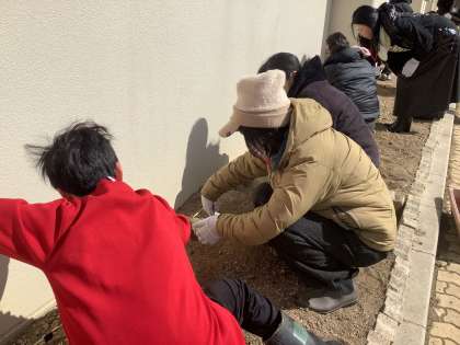 日差しの暖かさを少しだけ感じることができた今日、おやじたちの会の取り組みとして、東棟の横の花壇に花の苗を植えました。PTAに交じり中学部の農園芸班の子どもたちも協力してくれて180株の花の苗(ノースポール)を植えました。しっかり根付くようにみんなで育てていきたいと思います。ご来校の際には是非ご覧ください。