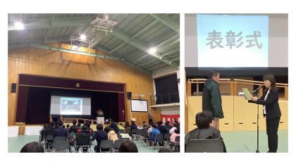 本日、令和6年度の修了式が行われました。はじめに、各学部から今年度がんばったことを発表しました。それぞれが頼もしい堂々とした発表でした。続いて、子どもたちの笑顔あふれるシーンのスライドを観て、この1年の振り返りをしました。「笑顔いっぱい」「チャレンジする」子どもたちの姿が次々と映し出され、子どもたちの成長を感じた修了式でした。