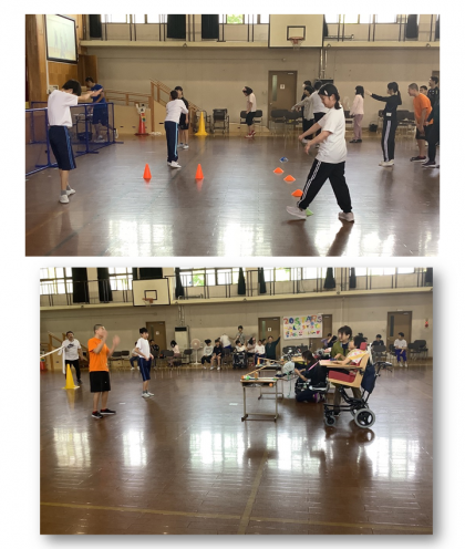 中学部2年もリハーサルを行いました。入場行進、開会式からはじまり、ダンス、競技を行いました。元気いっぱい取り組み、笑顔で友だちの応援する姿もたくさん見られました。