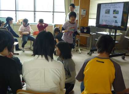 7月の校外宿泊学習に向けての事前学習を行いました。琵琶湖博物館での活動や夜のレクリエーション.それぞれの役割分担等,クイズ形式で行いました。問題が出されると,みんなが当ててほしそうな表情で司会者を見つめます。正解すると「大変良くできました」シールが白版に貼られていきます。