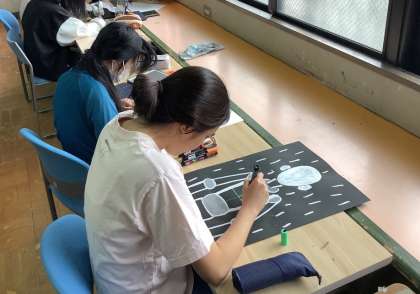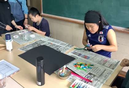 「アトリエ西総合」を行いました。子どもたちは好きな画材や材料を選び、各自が自由な発想で造形活動を行いました。今日は中学部、高等部の生徒が参加しました。それぞれ、とても集中して取り組んでいました。
