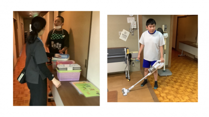 明日は本校で「西マルシェ」が開催されます。今日はその準備で、清掃、買い物かごの準備、会場の設営、接客の打ち合わせや練習等を行いました。「西マルシェ」では、生徒たちが製作したワーク製品の販売会と生徒による飲み物等のおもてなしもします。