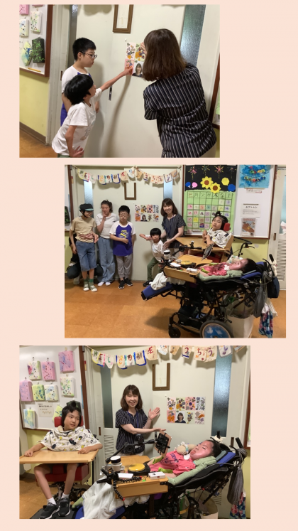 中学部の「学部ライフスタディ」では、押し花を作り、みんなで協力して一つの作品に完成させ、今日は校長室に届けに行きました。どの部分を自分が作ったか校長先生に一人一人が伝えました。校長先生と一緒に校長室の扉に飾り、記念撮影をしました。「華やかな校長室になって本当にうれしいです。ありがとうございます。」と校長先生から、お礼の言葉をもらいました。