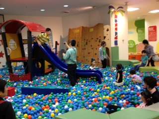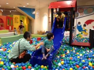 三宮のKIDーKID到着。でっかいボールプールに大はしゃぎ!!