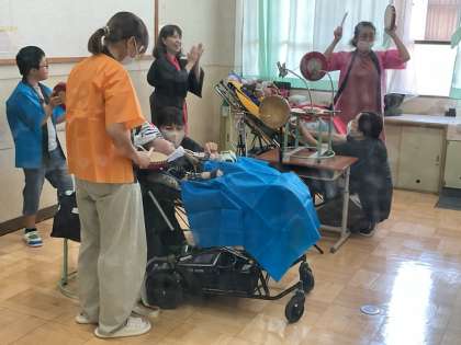 暑い日が続きますが、子ども達は再開した学校生活を活発に過ごしています。訪問学級の児童のスクーリングでは「西エイサー」の練習をしました。