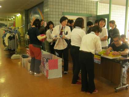 また,「注文・お届け」ユニットでは,第1回フリーマーケット「西の市」を開きました。「いらっしゃいませ」「ありがとうございます」「10円です」等,大きな声と笑顔で接客しました。