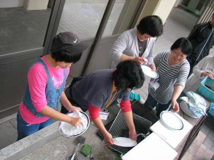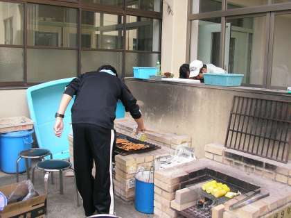 ブランコ製作の後,中庭のかまどでバーベキューもしました。このかまどは,15年ほど前の中学部3年生の生徒の皆さんが,卒業記念に作ってくれたものです。園芸班が焼き芋をしたり,校外学習の野外炊飯の事前学習で使っています。