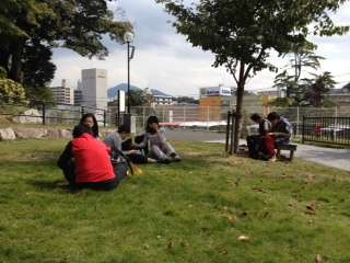 到津の森のきれいな芝生でお弁当を食べました。