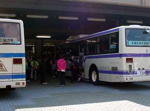 (左)スクールバスを降りてくる様子