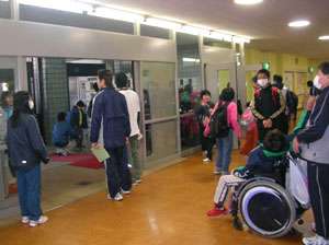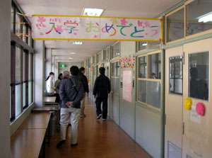 今日から授業開始です。子どもたちは,新しい教室で,新しい先生や新しい仲間とも出会って,期待に胸をふくらませています。初日なので,各学部の1年生の教室前では,多くの先生方が様子を見守っていました。