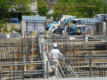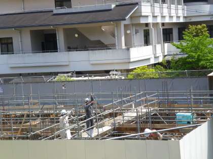 工事は順調に進んでいます。昨日までに,基礎の型枠が出来上がり,コンクリートを入れています。