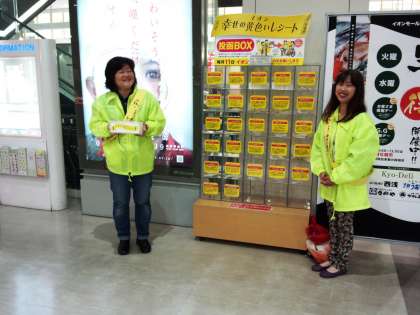 6月11日(火)10時〜11時,イオン京都五条店でPTA有志が「イオン幸せの黄色いレシートキャンペーン」の店頭PR活動を行いました。キャンペーンにご協力いただき,レシートを投函してくださったみなさん,ありがとうございました。この活動で得られた助成をPTA活動に役立てていきます。