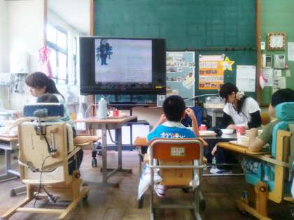 その後,図書室に20名ほどの児童生徒が訪れ,学校図書館運営支援員の田原恵美子先生による読み聞かせもしていただきました。
