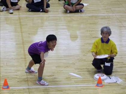 アキュラシー競技は,正確性を競う競技で,ゴールめがけてディスクを10投します。ディスタンス競技は,投げたディスクの距離を競う競技で,3投してどれだけ遠くに投げられるかを競います。