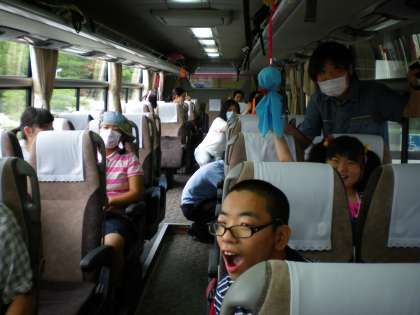 鳥取方面は中学部の修学旅行では初めてです。みんな元気に,ワクワクしながら大きな観光バスに乗り込みました。