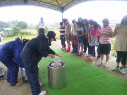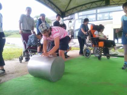 牛乳の入った60kgある筒をみんなで転がしてアイスクリームを作ります。