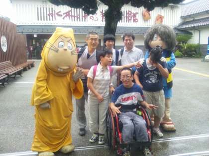 水木しげる記念館で、鬼太郎やねずみ男と記念写真を撮りました。