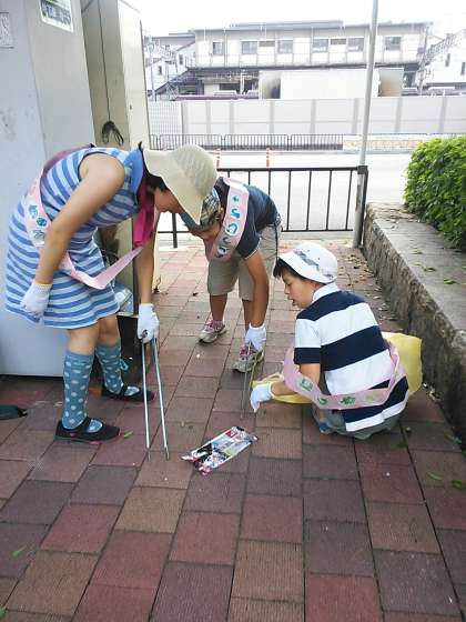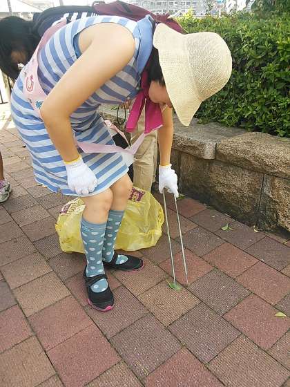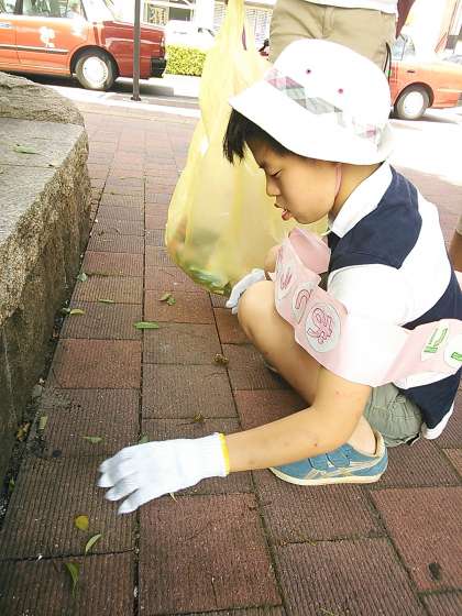 小さなごみや落ち葉を拾いました。